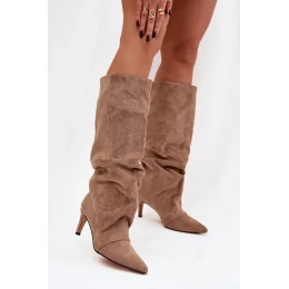 Dámské kozačky vyrobené z měkkého ekologického semiše jsou elegantní a ženský návrh na chladnější dny. Model na štíhlém podpatku krásně zdůrazňuje nohy, a špičatá špička dodává eleganci a opticky zjemňuje postavu. Skládaný, volný svršek dodává celku módní charakter. Boty jsou navlékací a vybavené podšívou, což zajišťuje pohodlí a tepelný komfort. Jedná se o velmi stylový střih, který skvěle doplní jak elegantní šaty, tak volné sady s džínami, vytvářející moderní a ženský vzhled.