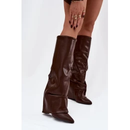Dámské kozačky s ohrnutým límcem jsou skutečný must-have pro nadcházející podzimně-zimní sezónu! Zasunuté a umístěné na stabilním podpatku typu sloupek zaručují pohodlí a jistý krok. Zateplení zajistí pohodlí v chladnějších dnech, zatímco ohrnutý límec, sahající na podpatek, jim dodává originální charakter. Špičaté špičky zdůrazňují ženský styl, díky čemuž se kozačky skvěle hodí do efektních zimních stylizací.