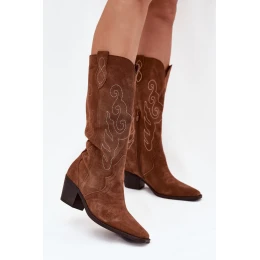Dámské kozačky ve stylu kauboje jsou extrémně moderní obuví na podzimní a zimní sezónu. Vyrobené z přírodního semiše. Stabilní, nízký podpatek je dělá pohodlnými a ideálními na každodenní nošení. Model se zavazováním na zip usnadňuje obouvání bot. Švy na vrchní části dodávají botám charakteristický kaubojský styl. Stylový střih je dělá skvělou volbou pro různé outfitové kombinace, ať už na každý den nebo na speciální příležitosti.