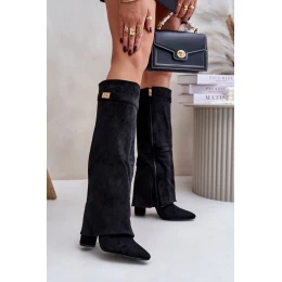 Kozačky Na Podpatku S Otočeným Zvrškem Zateplené Černé Urelli