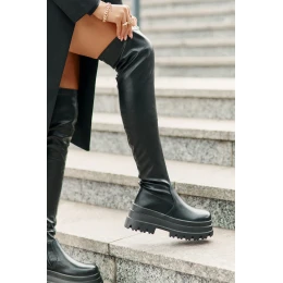 Kozačky nad kolena na masivní platformě jsou stylovou volbou na chladnější dny. Model nazouvací, s dalším zipem na dolní části svršku, což usnadňuje oblékání a přizpůsobení. Zateplené pouze na úrovni chodidla, zajišťují teplo a komfort nošení. Módní střih, který dodá charakter každému outfitu. Při výběru velikosti se řiďte tabulkou velikostí.