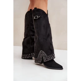 Kozačky s ohrnutým svrškem na podpatku černé Iveliri