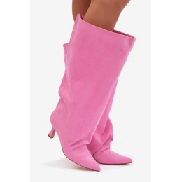 Kozačky s širokou horní částí a řasením na podpatku Růžové Harela