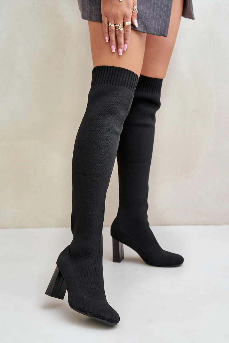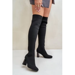 Kozačky Se Školkovou Špicí Nad Koleno Na Podpatku Černé Esanira