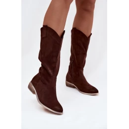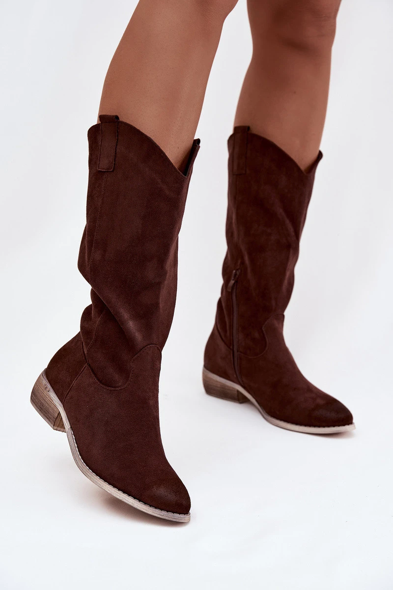 Kozaki Kovbojky Na Nízkém Podpatku Z Eko Semiše Čokoládové Cherrie