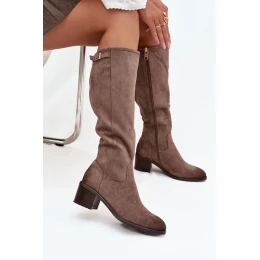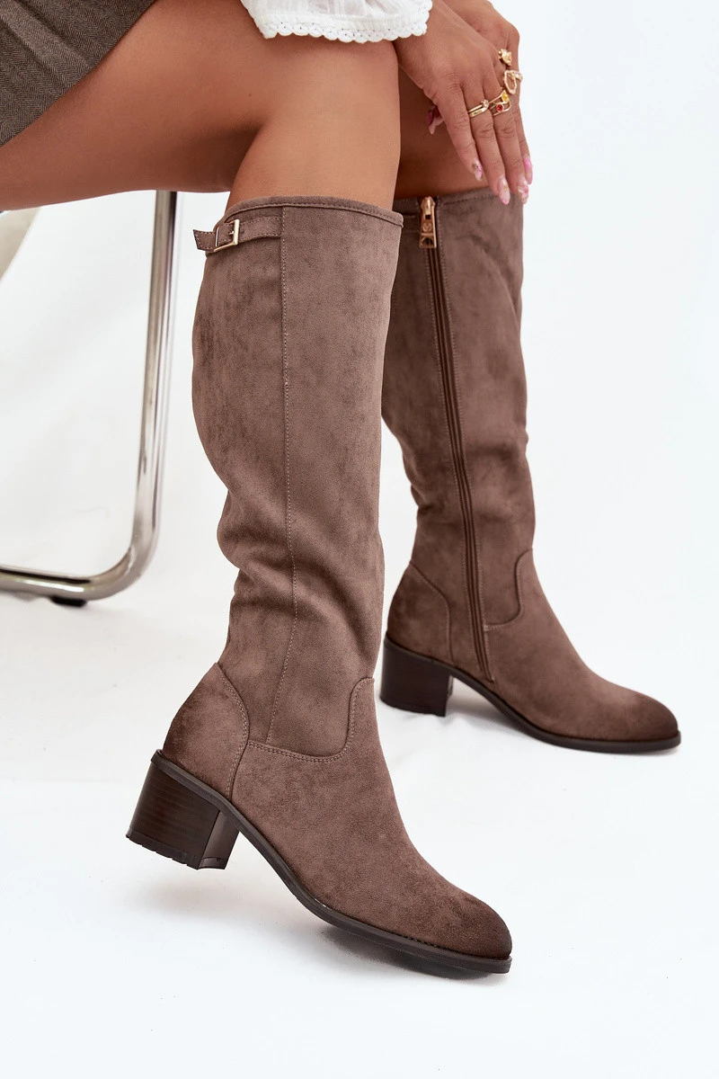 Kozaki před koleno eko semiš na sloupku Vinceza 58332 tmavě béžové