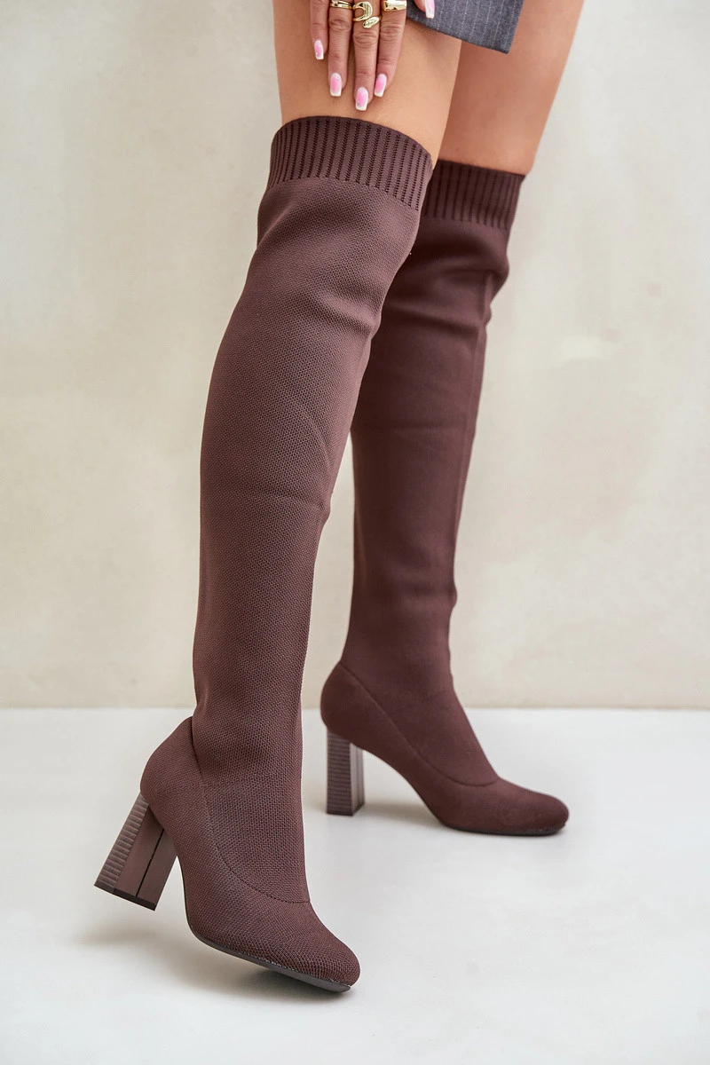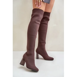 Dámské kozačky s efektní, nad koleno sahající, punčochovou částí. Model je umístěn na stabilním sloupkovém podpatku, který dodává eleganci a prodlužuje siluetu. Zaoblené špičky zajišťují pohodlí při nošení. Vnitřek je zateplen pouze na úrovni chodidla. To je stylové a módní řešení, které se skvěle hodí k šatům a sukním! Při výběru velikosti se řiďte tabulkou velikostí.