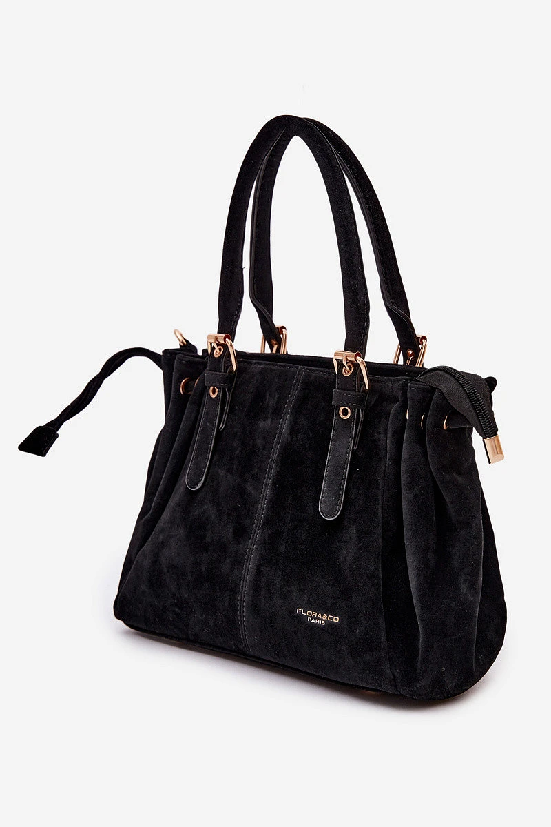 Stylová dámská kabelka vyrobená z eko semiše je výjimečným doplňkem, který přitahuje pozornost svým módním vzhledem a jemnými detaily. Měkká na dotek textura materiálu jí dodává eleganci a originální charakter. Model se zapíná na zip, což zajišťuje bezpečí uložených věcí. Kabelka je jednokapsová a její vnitřek je vybaven dvěma praktickými kapsami, které usnadňují organizaci. Navíc je na vnějšku další kapsa, ideální na drobnosti, ke kterým chcete mít rychlý přístup. Celkový vzhled doplňují pohodlné úchyty a ozdobný přívěsek ve tvaru srdce s korálky, který dodává kabelce šarm a ženský styl. Ideální pro ženy, které ocení módní vzhled, funkčnost a jedinečné detaily. Rozměry: Šířka - 38 cm Výška - 22 cm Tloušťka - 13 cm.
