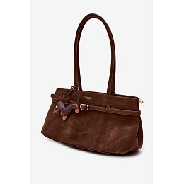 Kožená kabelka z imitace semiše přívěšek jezevčík čokoládová Noellea