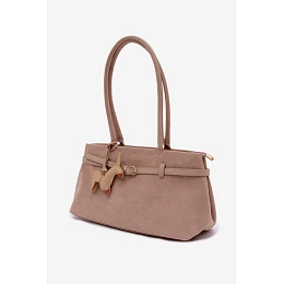 Kožená kabelka z imitace semiše s přívěskem jezevčík béžová Noellea