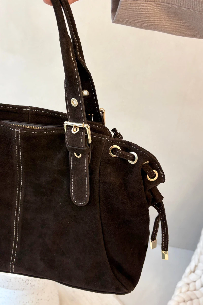 Kožená semišová kabelka čokoládová Ilienne