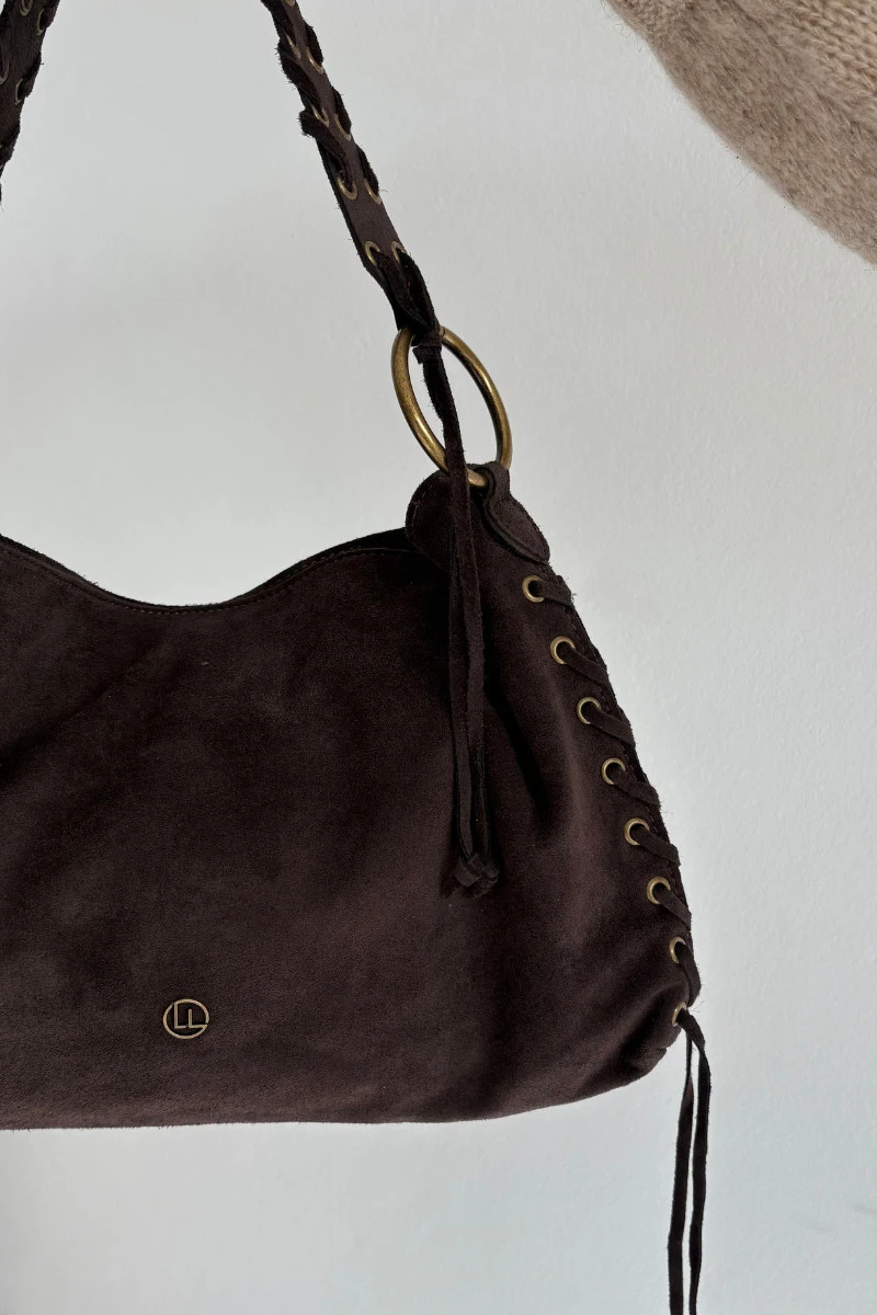 Kožená semišová kabelka s ozdobným šněrováním čokoládová Janelis