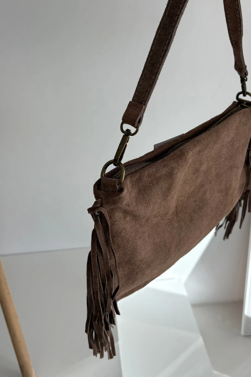 Kožená semišová kabelka s třásněmi hnědá Jessira