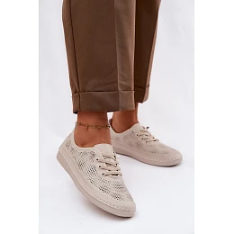 Kožené Ažurové Dámské Polobotky LR61-7083 Béžové