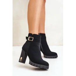 Elegantní boty z ekologické kůže, které se vyznačují vysokým sloupkovým podpatkem. Vnitřek je zateplen obuvnickým rounem, což zajišťuje pohodlí a teplo v chladnějších dnech. Zaoblené špičky dodávají klasický charakter a pásek se zlatou sponou na svršku představuje stylový prvek. Při výběru velikosti se řiďte tabulkou velikostí.