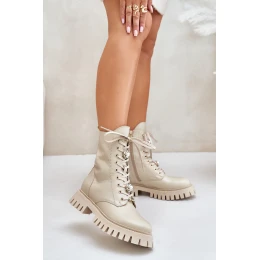 Kožené botky worker s přívěsky na zip CheBello 4553 Béžové