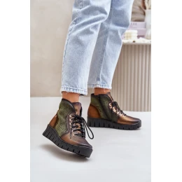 Kožené Boty Na Platformě A Klínu Maciejka 06702-09 Zeleno-Zlaté