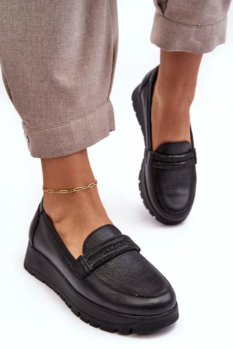 Kožené Boty na platformě s ozdobou, černá Lemar Lehira