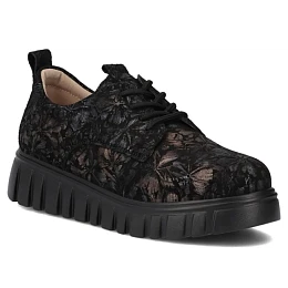 Kožené boty na platformě v květinové černé barvě DP6846 Filippo