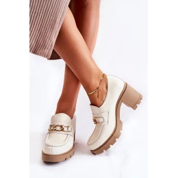 Kožené boty na sloupu se zlatým zdobením světle béžová Mikeyla