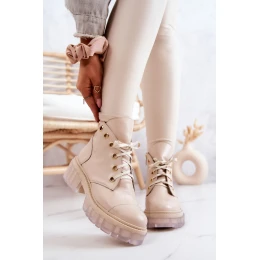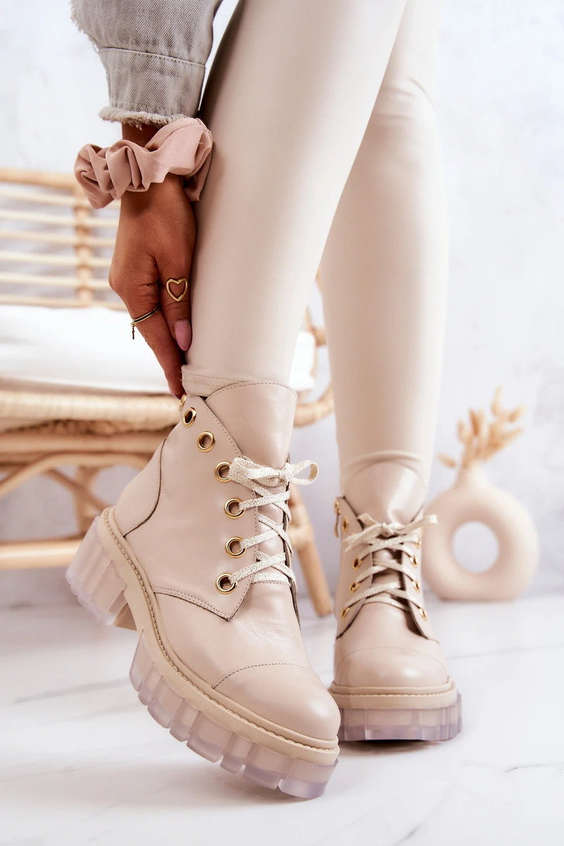 Kožené Boty S Masivní Podrážkou Béžový Horizont