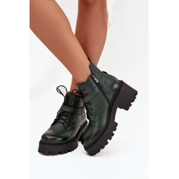 Kožené dámské boty na klínku s ozdobným páskem zateplené Zazoo 60557 tmavě zelené
