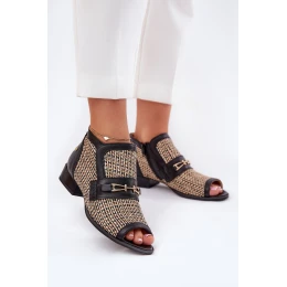 Kožené Dámské Boty S Odkrytými Prsty Maciejka Černobéžové 06934-39/00-1