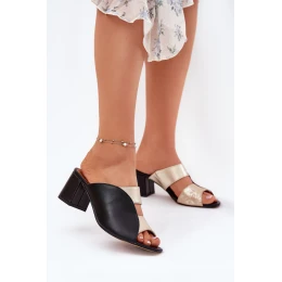Kožené Dámské Klapky Na Podpatku Maciejka Černozlaté 06943-25
