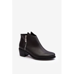 Dámské botky vyrobené z přírodní kůže. Vnitřek je vybaven podšívkou z kožešiny. Podpatek je ve formě nízkého sloupku. Zvršek mírně přes kotníkem se zipy. Zpevněný zadní část zajistí stabilitu chodidla. Špička je mandlového tvaru. Tento klasický střih by měl být součástí vaší šatní skříně! Při výběru velikosti se řiďte tabulkou velikostí.