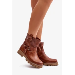 Kožené Dámské Kotníkové Boty Na Plochém Podpatku Lewski Hnědé