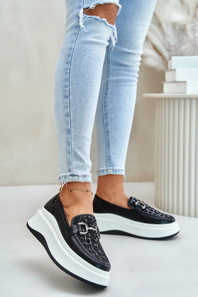 Kožené Dámské Mokasíny Na Platformě S Dekorací Černé Vinceza 89105