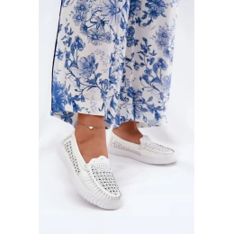 Kožené Dámské Mokasíny S Vzorováním Vinceza 88028 Bílé
