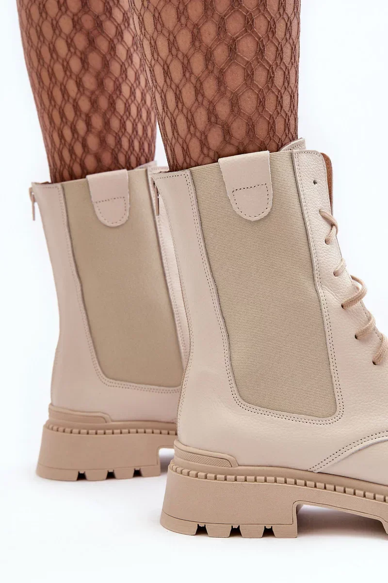 Kožené dámské pracovní boty šněrovací světle béžová Nicole