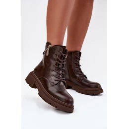 Kožené dámské pracovní kozačky s vyhříváním Big Star SS274453 hnědé