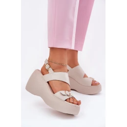 Kožené Dámské Sandály Na Klínku A Platformě S.Barski LR51-540 Béžové