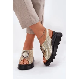 Kožené Dámské Sandály Na Klínu S Ozdobou Artiker 56C0109 Zlaté