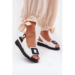 Dámské sandály z přírodní kůže, usazené na klínu, jsou elegantní volbou na teplé dny. Model se vyznačuje ozdobou vpředu, která jim dodává výjimečný charakter. Zapínání na sponu s nastavitelným páskem zajišťuje dokonalé přizpůsobení noze. Navíc měkká stélka zaručuje komfort po celý den. Tyto sandály budou skvělou volbou pro letní stylizace, kombinující eleganci s pohodlím. Při výběru velikosti se řiďte tabulkou velikostí.