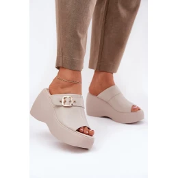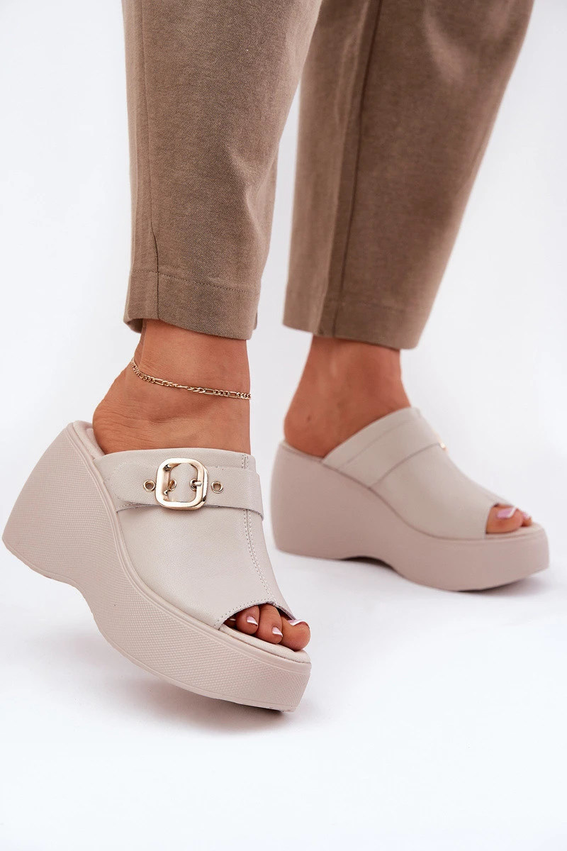 Kožené Dámské Sandály Na Platformě A Klínu S Přezkou Béžové S.Barski LR51-542