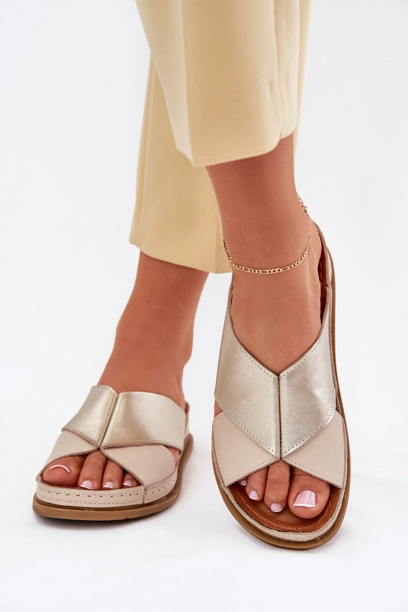 Kožené Dámské Sandály Na Platformě Maciejka L4986-37 Béžovo-Zlaté
