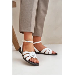 Kožené Dámské Sandály Na Plochém Podpatku Bílé Zazoo 3688