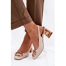 Kožené dámské sandály na podpatku s přezkou D&A LZ61-2010 Béžové