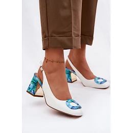 Kožené dámské sandály na podpatku s přezkou D&A LZ61-2010 bílé