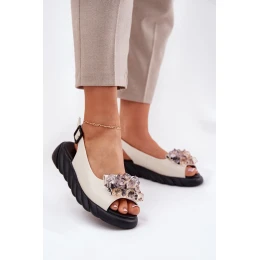 Kožené Dámské Sandály S Krystaly Béžové Artiker 54C1627