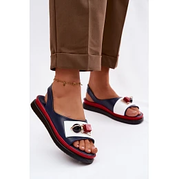 Kožené dámské sandály s ozdobou D&A GR61-5932 tmavě modré