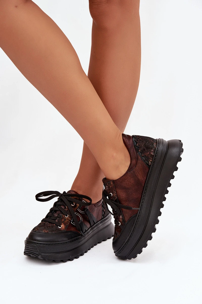 Kožené dámské tenisky na platformě Maciejka 06562-25 čokoládové