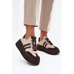 Kožené dámské tenisky na platformě Zazoo 3775 béžově-čokoládové