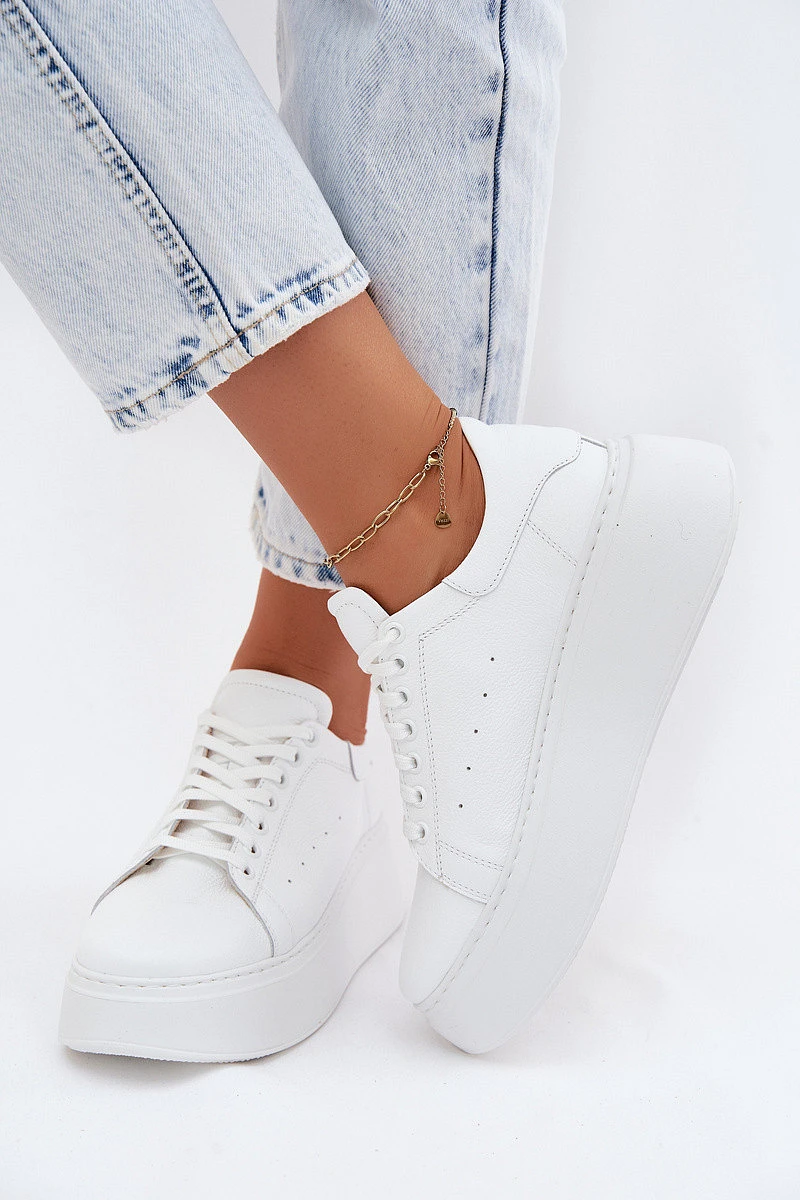 Kožené dámské tenisky na platformě Zazoo N408S2 bílé