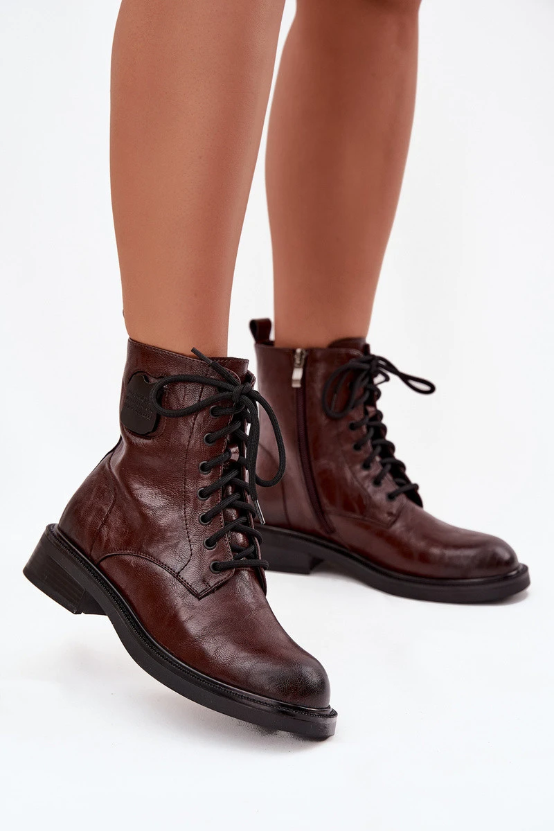 Kožené dámské workery s ozdobným detailem Maciejka K7180-01 hnědé