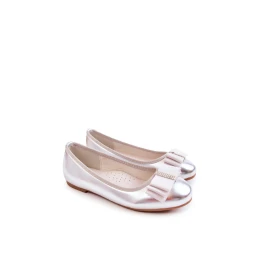 Kožené dětské baleríny s ozdobnou mašlí stříbrne Claril