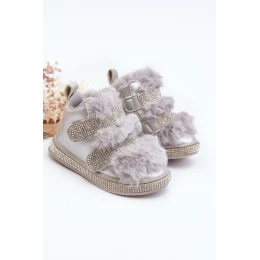 Kožené dětské zimní boty s kožíškem Stříbrné Leela